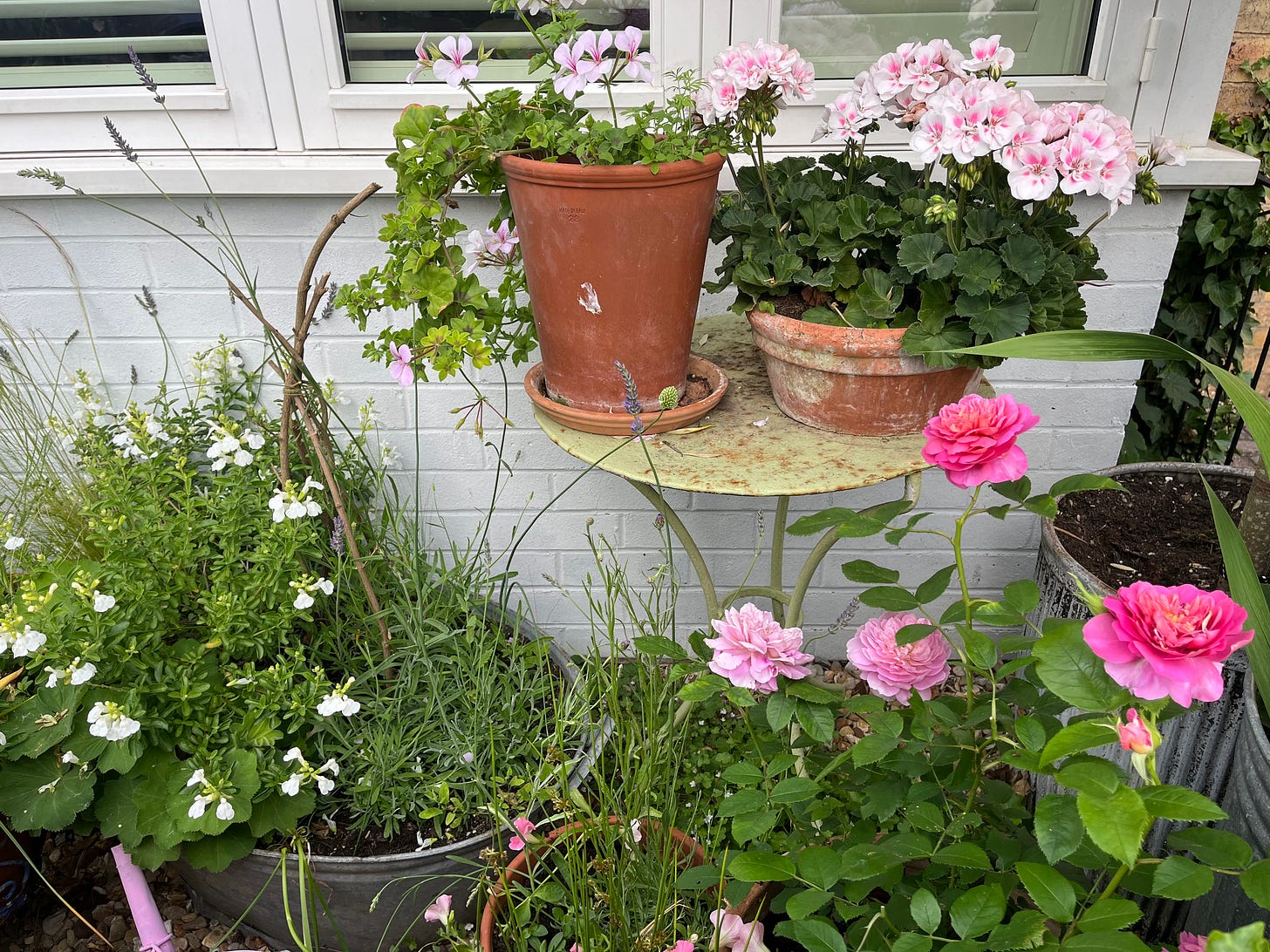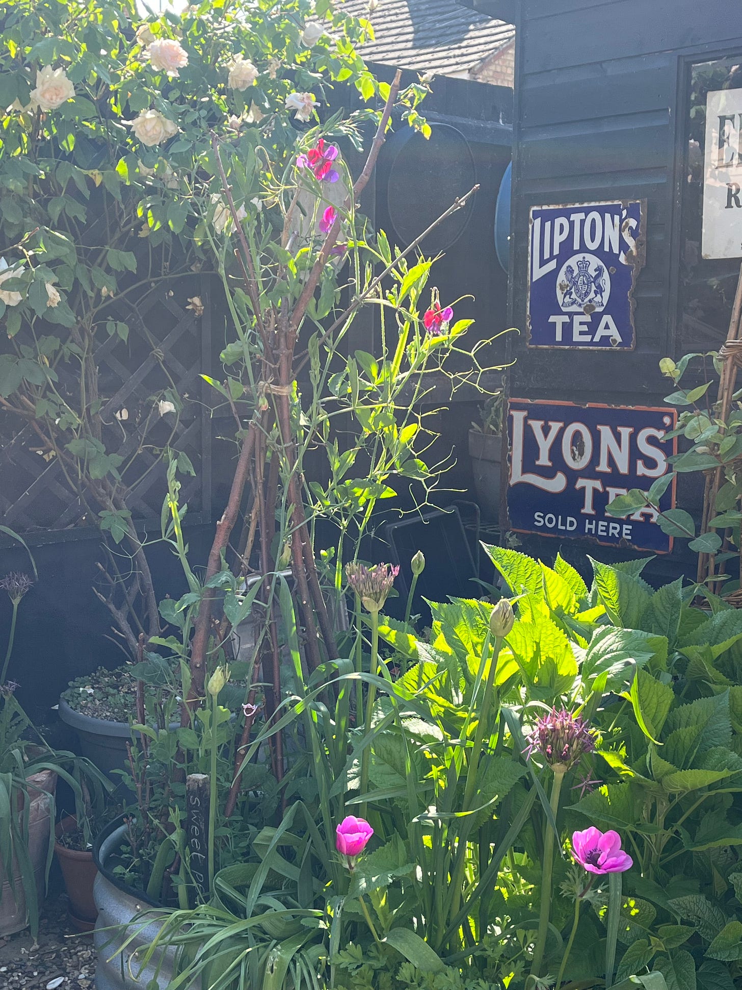 Other fertile ground (sorry!) for ideas-stealing are the RHS show gardens. Of particular interest to me are the balcony gardens at Chelsea, because their bijoux proportions tally with my space. I’m also an unashamed stalker of other people’s lovely front gardens, and sneaky phone pictures are taken for reference. My own slender 1 x 4m slice (below) is based on a cottage that I spotted in a coastal resort in Lincolnshire some years ago. And our reclaimed brick path at the back was yet another steal, this time from a beautiful but tiny garden in the back streets of Cambridge seen on a beautiful spring evening in 2019. I still have that photo stored away somewhere.