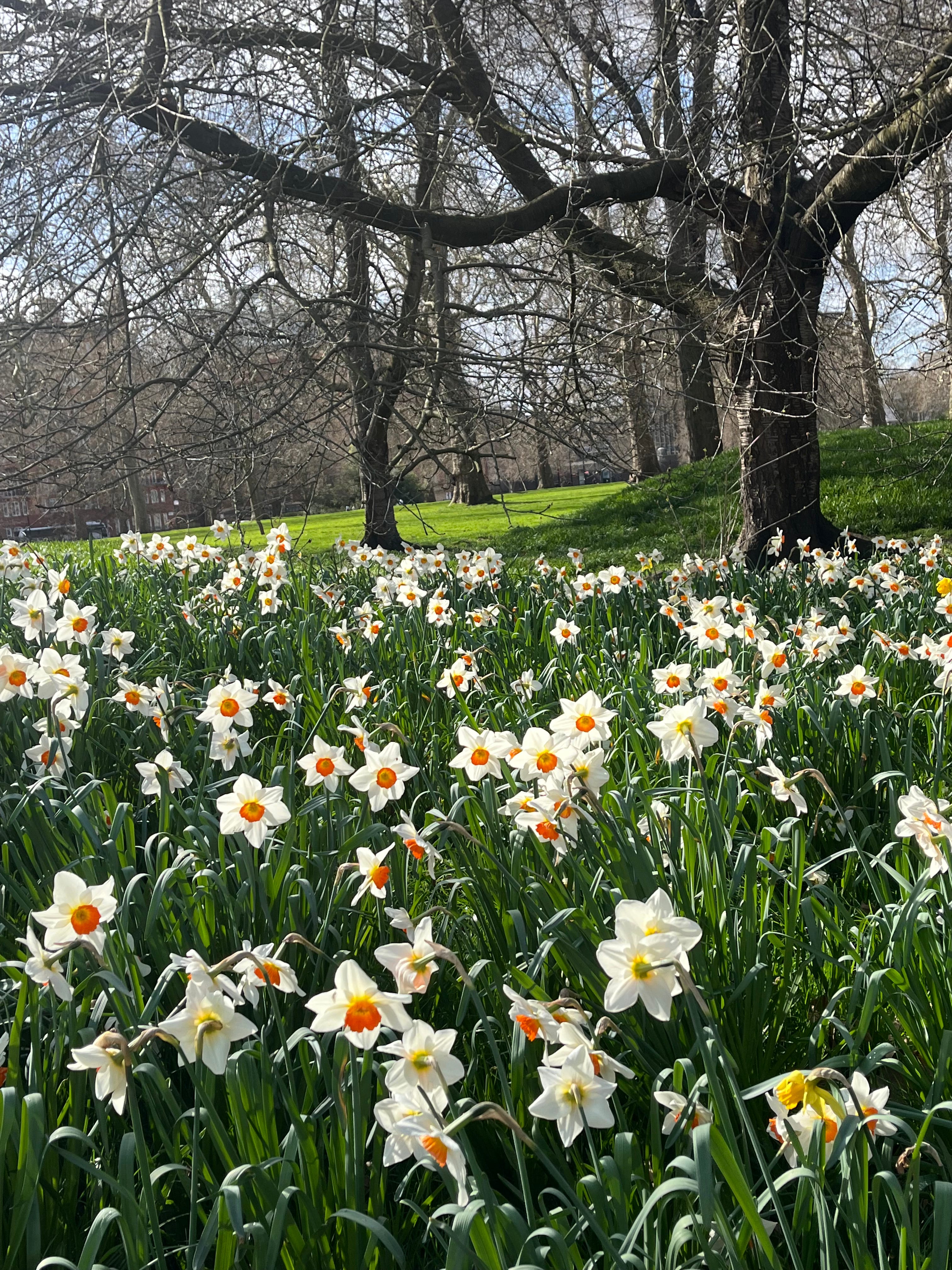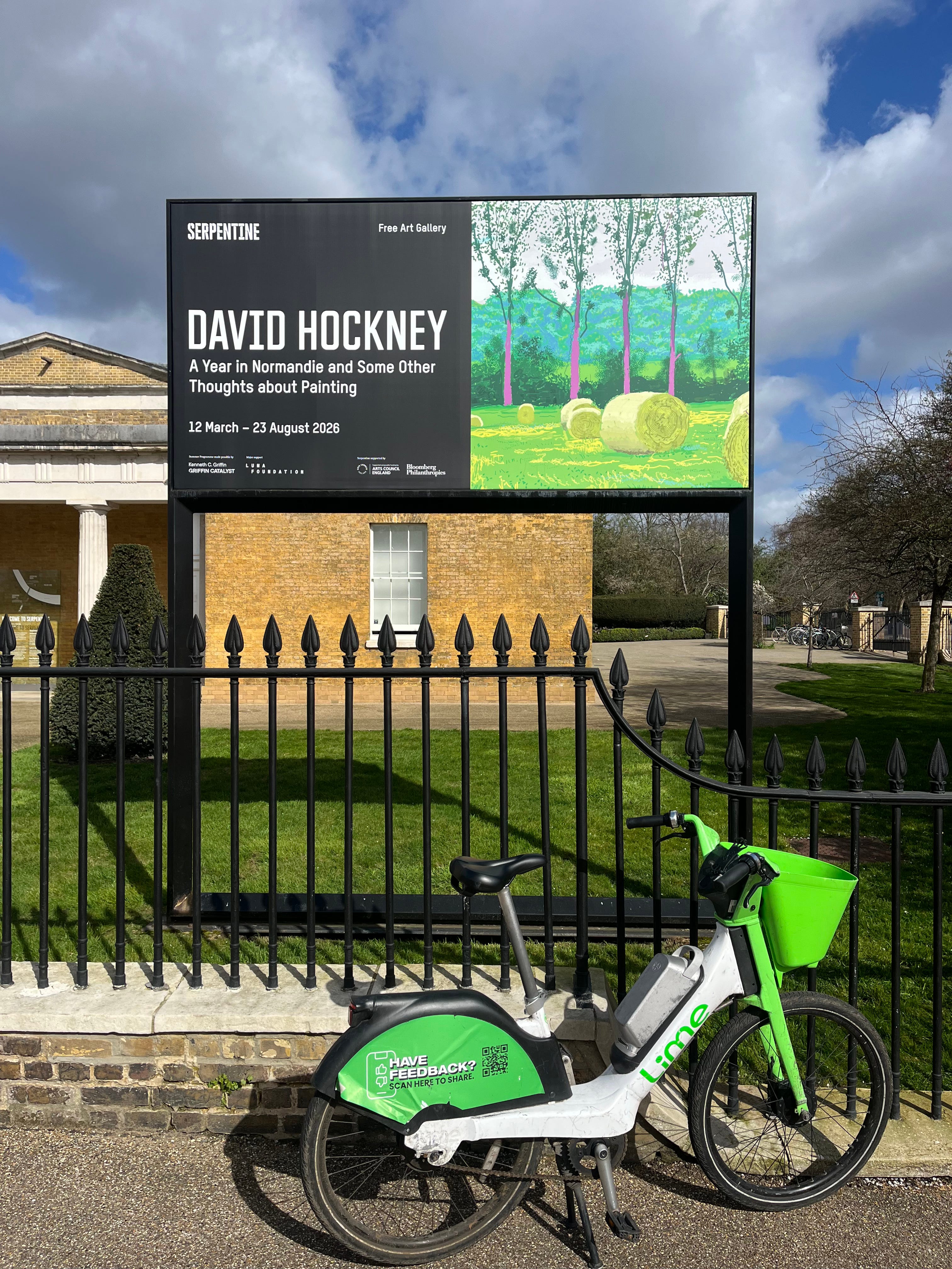 I’ve just returned from the preview of David Hockney’s new exhibition at Serpentine North. David Hockney: A Year in Normandie and some other thoughts about painting has at its centre an enormous frieze, initially painted as a series of 200 works on the artist’s iPad when he was settling into his studio in northern France in 2019. The countryside is depicted through the seasons, from the chilly bareness of the winter landscape, to the burgeoning blossom of spring, the ripeness of summer, harvest and autumn fruits. There is no human presence, other than the occasional garden chair or treehouse, echoing the eerie emptiness of the Covid era when this was created. It was a joyful experience, especially on a sunny day with the wind blowing blossom from the trees in Hyde Park, and the mass planted narcissi holding the light in their trumpets.
