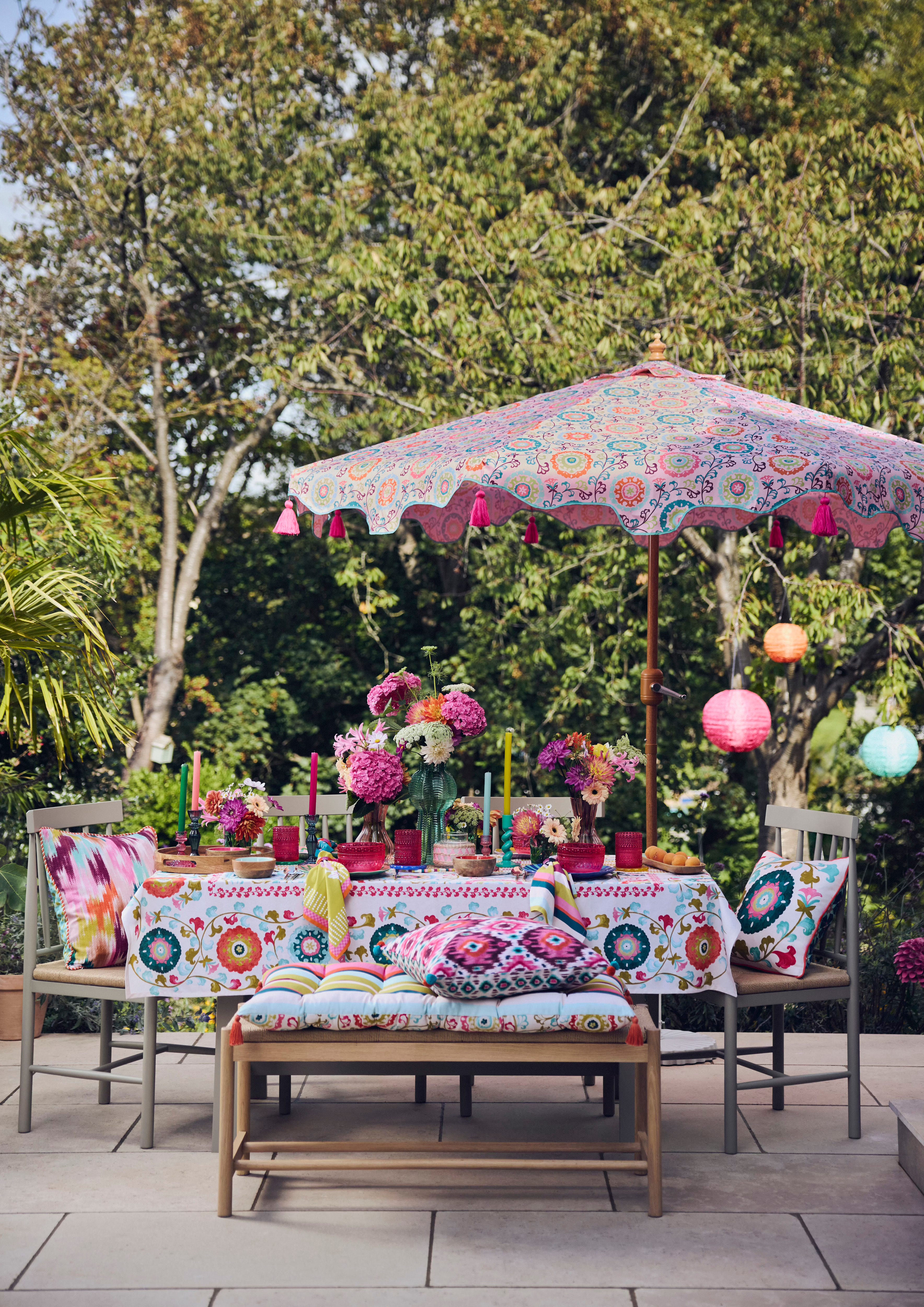 Of course it’s way too cold yet, but I’m eyeing up the High Street’s new season ideas for outdoor living. I’m keen on Sophie Robinson’s bright designs for Dunelm I have a tablecloth from last year’s collection, which creates instant uplift, and there are even more colours and patterns this season. I like to create this effect with vintage textiles: time to shop my cupboards to capture some of those Hockney-esque primary colours.
